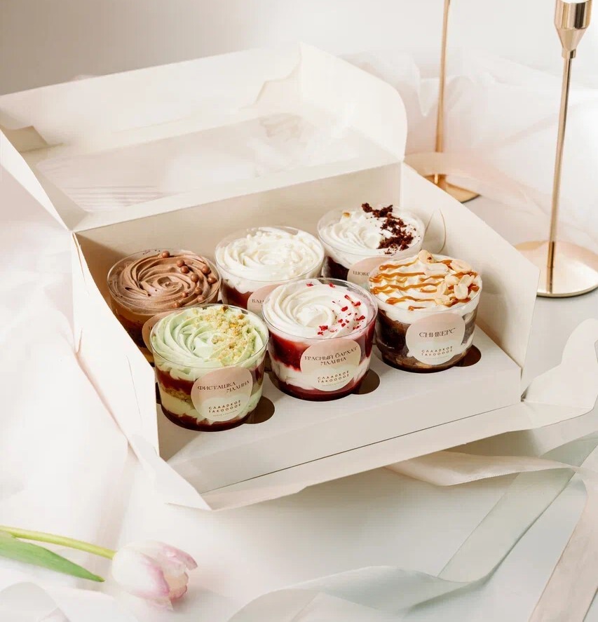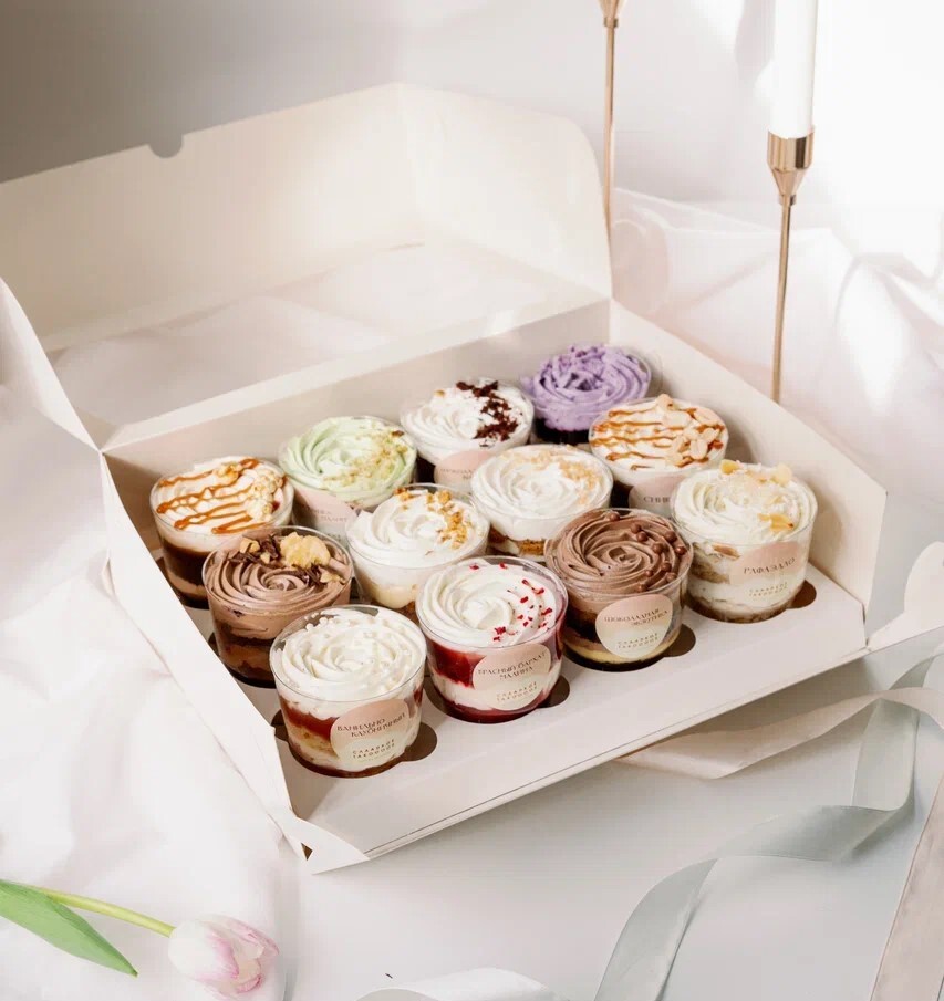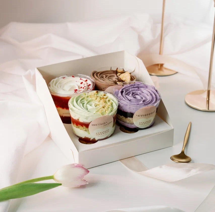 Начинки будут подготовлены в виде небольших тортиков в стаканчиках - трайфлов. С помощью которых вы сможете оценить те или иные вкусовые сочетания и выбрать наиболее подходящий вкус для вас и ваших гостей.